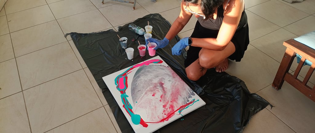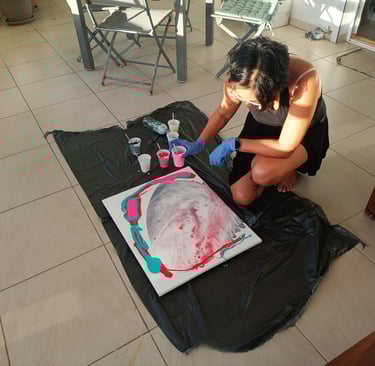 Plongez dans mon univers où la nature et la matière s'entrelacent à travers le pouring, l'acrylique et l'aquarelle.